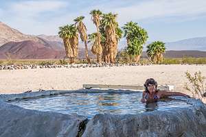 Saline Valley rock artBoth oases are amazing – prettier and better maintained than most commercial hot springs. They were developed in the 60s, before Saline Valley became a part of Death Valley National Park, by a group of hippies who made a semi-permanent camp here – taming the wild springs into several concrete, rock, and tile soaking pools. The camp even had a leader named “Wizard.” When he passed away, “Lizard” took his place. You can’t make this stuff up.